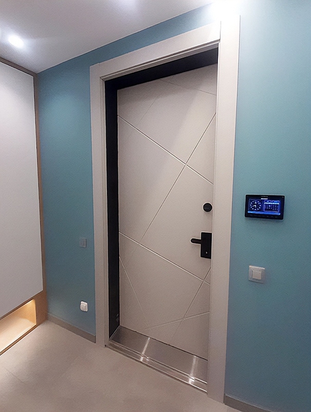 Входная дверь с комбинированной МДФ панелью и бугельной ручкой